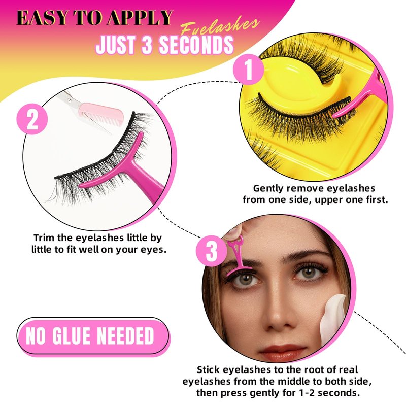 - 【Easy to Apply】An easy challenge! First, curl your natural eyelashes. Then choose 1 pair no glue lashes according to your own eye shape, and place W cluster lashes under your natural eyelashes rather than above. W self adhesive eyelashes without glue or eyeliner. Finally, use W tweezers to give your natural and self-adhesive lashes a better fit. So you can finish your work!
