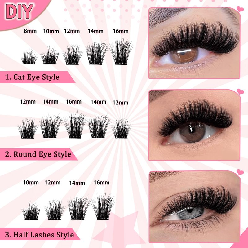 - Multiple Sizes to Choose at Will:Our cluster lashes come in a variety of sizes, so you can pick them up according to your personal preferences and customize these clusters lashes to a personalized eyelash style.