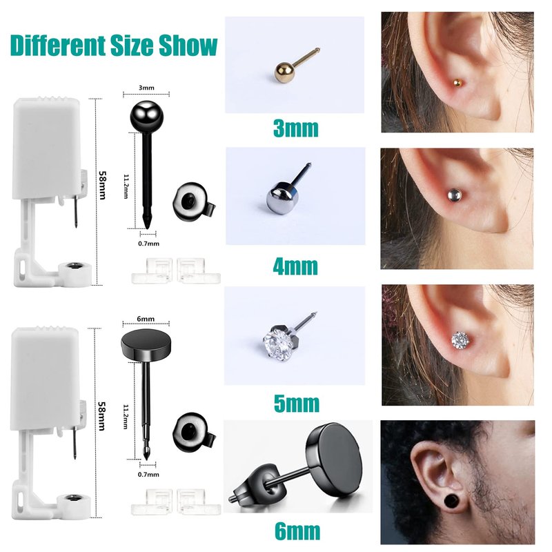 - EAR Piercing Kit Including:Gun + Stud Earrings+Alcohol Cotton,The Gun Body Is A Patented Product After Upgrading, Which Is Better Used,The Stud Earrings Which Inside Of The Gun Are Stainless Steel Grade Raw Materials, Plus Jewelry Grade Ball Inlay Technology