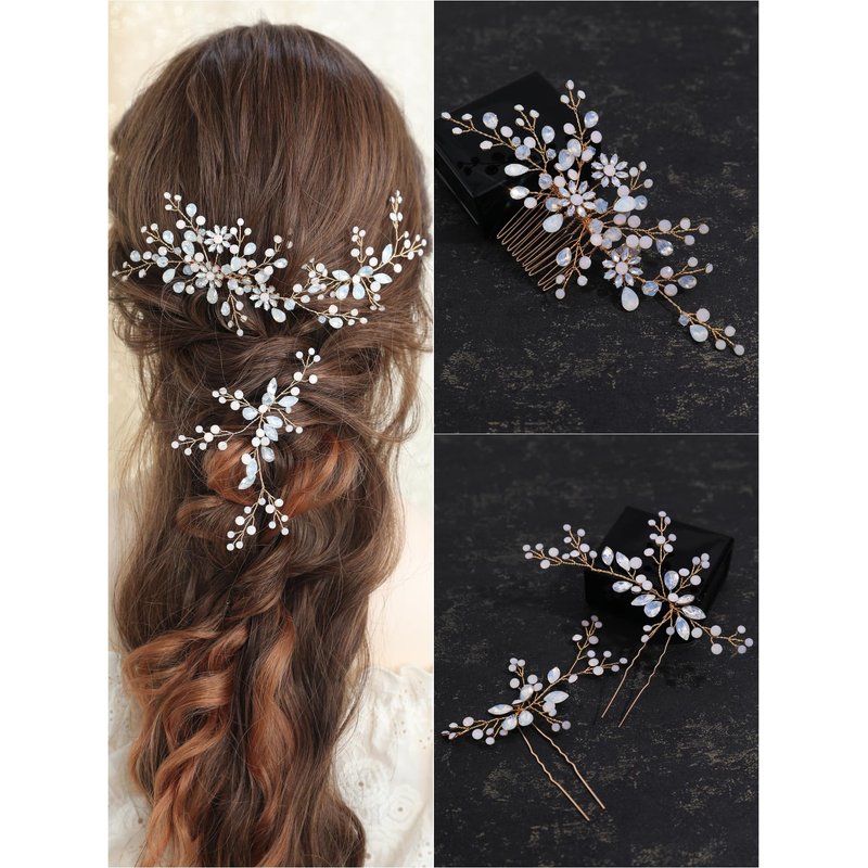 - Wedding hair accessories are 3 pieces in total, made of sparkling rhinestones, copper wire, multiple colors to choose from, unique design, handmade.