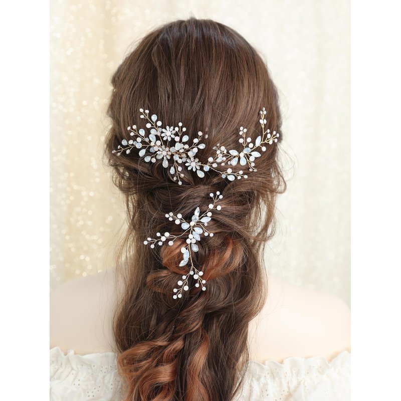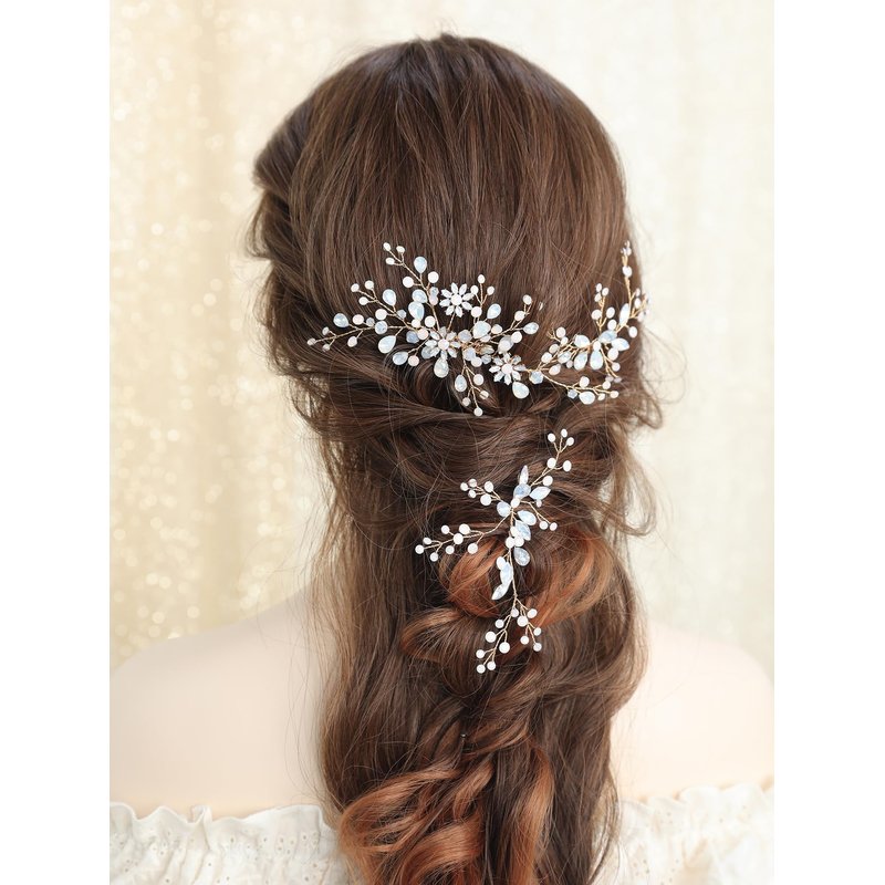 Wedding hair accessories are 3 pieces in total, made of sparkling rhinestones, copper wire, multiple colors to choose from, unique design, handmade.Bridal headdress can be worn with many styles of outfits and it will add the perfect touch to your outfit.