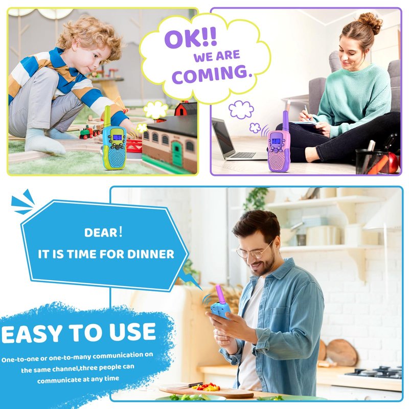 - Safe and Eco-Friendly: Our walkie talkies made of high quality ABS plastic material, non-toxic water-based paint and polished smooth edges and corners for use securely.Good choice for parents to kids toys and gifts. And Our customer support team is standing by to offer you pleasant shopping experience. Hope our walkie talkies can bring you a pleasant and unforgettable experience.