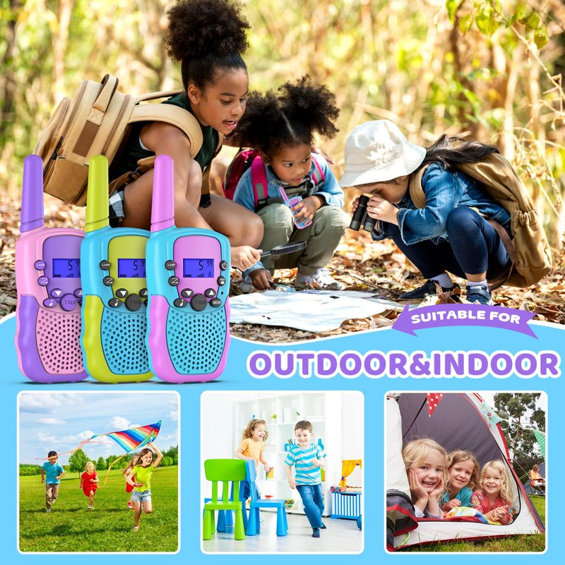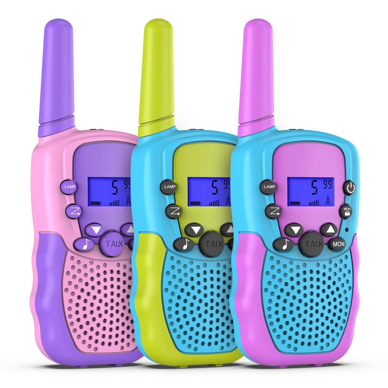 - Interactive Kid Toys : 3 pack kids walkie talkies can be real-time monitoring of children with a long range, intelligent alarm system etc. risp and smooth sound quality with adjustable volume level, stay connecting with your friends and families especially in outdoor activities.Your kids can enjoy long distance play and open a world of possibilities within your child's outdoor adventures with an impressive 3 KM+ range and 22 channels.