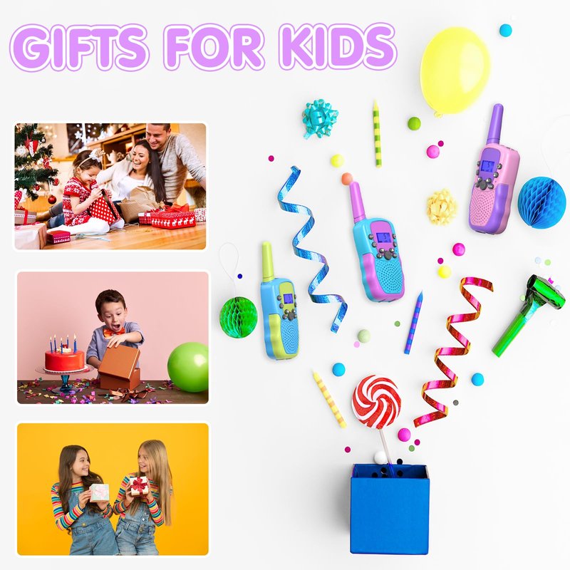 - Ideal Gifts and Toys for Age 3 and Up: Walkie talkies are well packaged in a stylish and beautiful gift box, suitable for your special gifts for kids, friends or family members for great festivals gifts, birthday gift or visit gift. It is an interested gifts for boys and girls ages 3 4 5 6 7 8 and up.Ideal STEM toys for both indoor and outdoor activities such as hide and seek, spring outing, summer camping and bird watching.