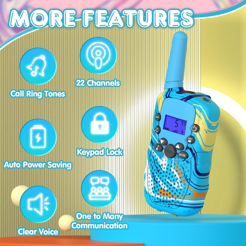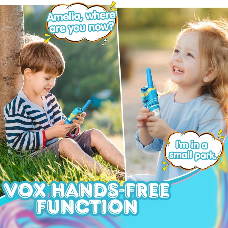 - 【Ergonomic Design】Featuring a small and lightweight body, our walkie talkies are easy for kids to hold in their hands. Each walkie talkie toy weighs only 90g, making them comfortable to carry around. An uncomplicated push-to-talk button makes this toy easy to use for boys age 3 4 5 6 7 8.