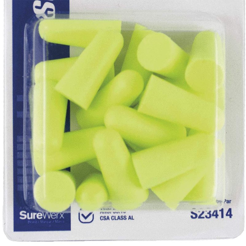 Sellstrom Disposable Uncorded Foam Ear Plugs, 32dB NRR, Hi-Viz Green (Pack of 10), S23414