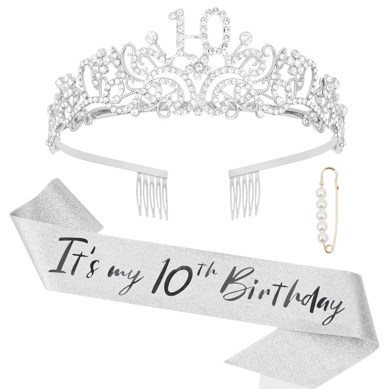- 10th birthday decorations for girls: The set includes 10th birthday sash, 10th birthday crown and pearl pin. It completes your birthday look and help you get more compliments. Perfect 10th birthday gifts for girls