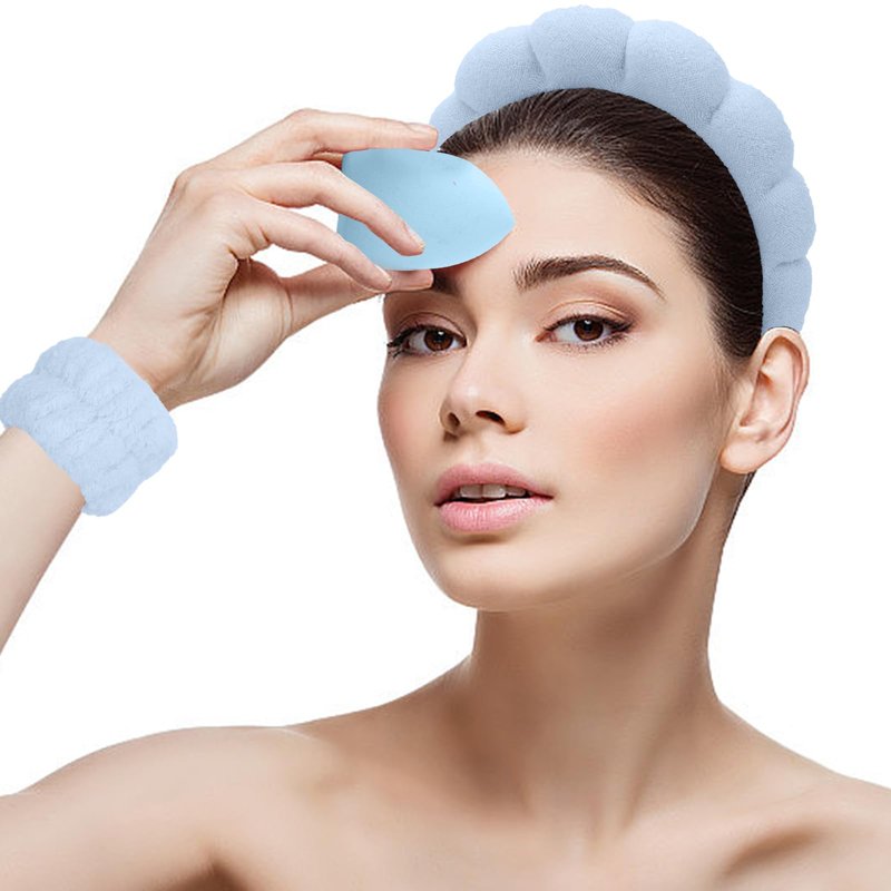 - Usage scenario: Wear the headband, scrunchies and wristband when you wash your face to prevent water from wetting your hair and your sleeves. The makeup sponge can be used wet or dry, depending on your own needs