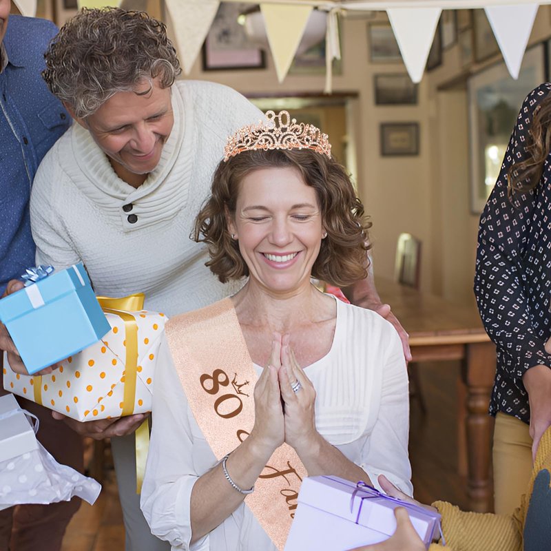 - Great 80th birthday decorations: In addition to balloons, curtains, banners and other 80th traditional birthday decorations, add a birthday crown to women and leave her a special birthday moment. No one can refuse to be beautiful, especially at the commemorative moment of birthday. Put it on and take photos, leaving a precious memory for the future