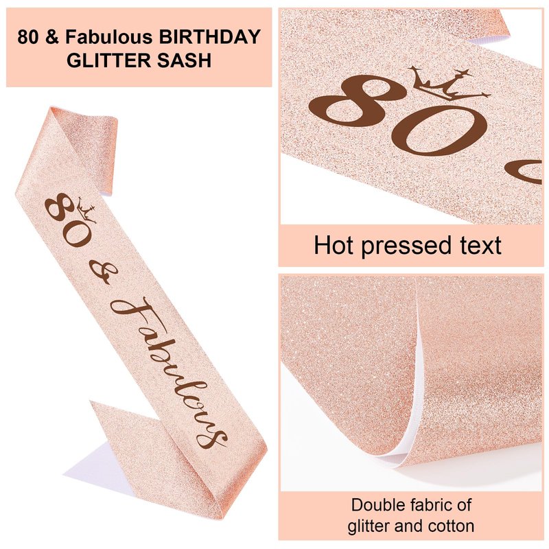 - 80th birthday sash: In the selection of the cloth, we used the shiny glitter cloth to make you the most eye-catching queen at your birthday party(pin is included in the package to connect the sash). Besides, we adopted the hot pressed design for the text to avoid the embarrassing situation of the hook and the printing falling off