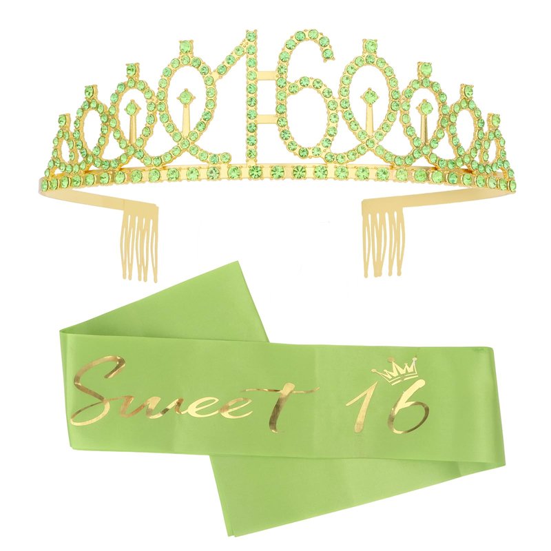 Semato Green Sweet 16 Party Decorations 16th Birthday Crown and Sweet 16 Sash Kit- Sweet 16 Gifts for Girls 16th Birthday Party Favors Birthday Party Supplies for Girls