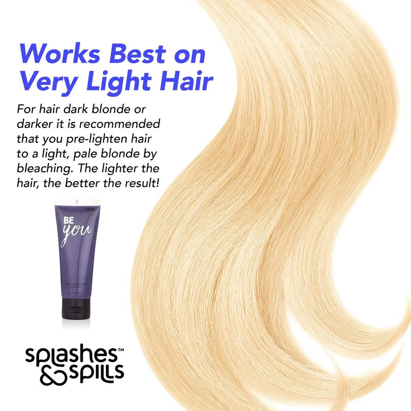 - SEMI-PERMANENT HAIR DYE: Express yourself without the commitment. Semi-permanent hair dye from Splashes & Spills allows everyone to temporarily dye their hair. To get the best results apply to light blonde or bleached hair.