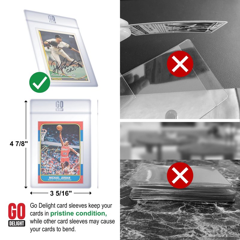- ✔ HIGH PROTECTION: Every collector knows the heartbreak of damaged cards. Our trading card sleeves are here to prevent just that. With Go Delight's perfect fit card sleeves, safeguard your most prized cards from bending, fading, and those dreaded corner damages.