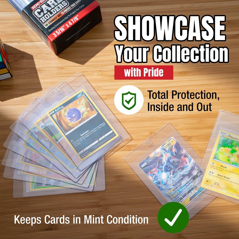 - ✔ EASY INSERTION & REMOVAL: Ever struggled with hard card sleeves that just won’t cooperate? Our card protector features a 1/2" lip ensuring effortless insertion and removal. Whether you're showing off a prized possession or prepping for grading, your cards glide in and out with ease.