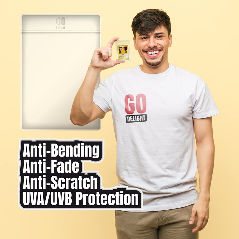 - ✔ HIGH PROTECTION: Every collector knows the heartbreak of damaged cards. Our trading card sleeves are here to prevent just that. With Go Delight's perfect fit card sleeves, safeguard your most prized cards from bending, fading, and those dreaded corner damages.