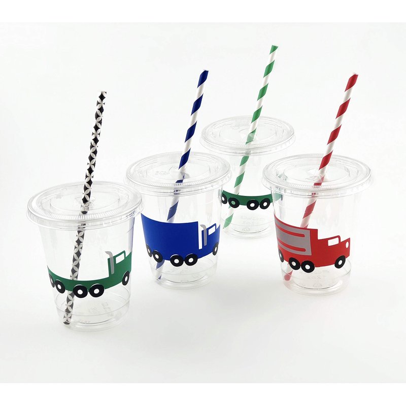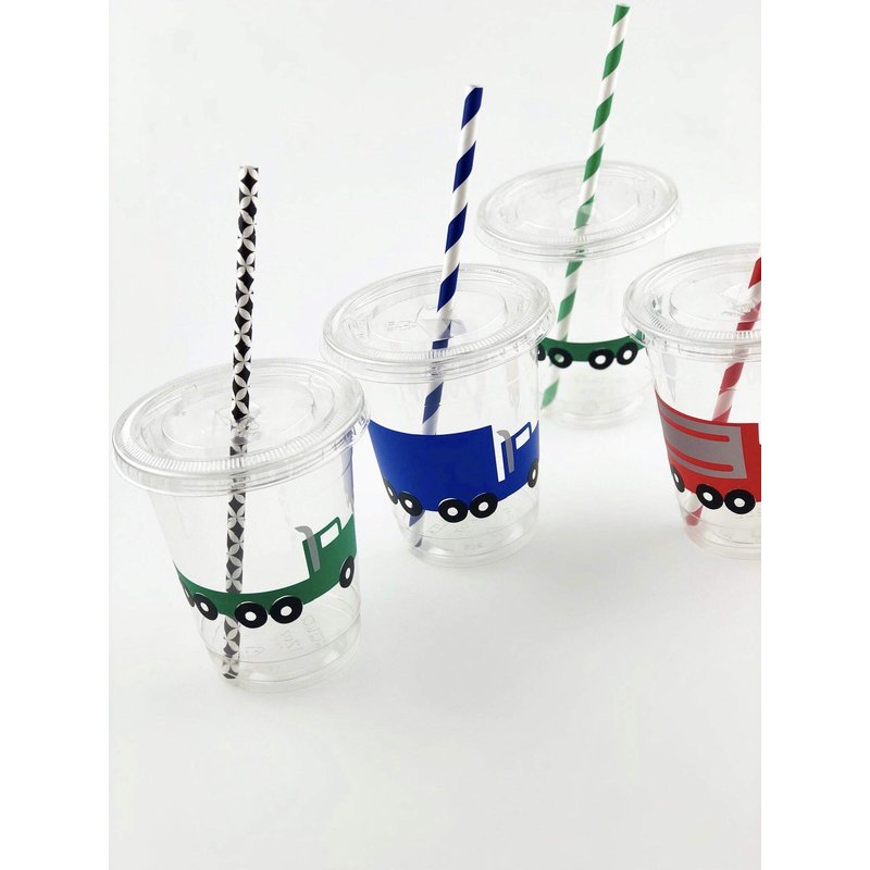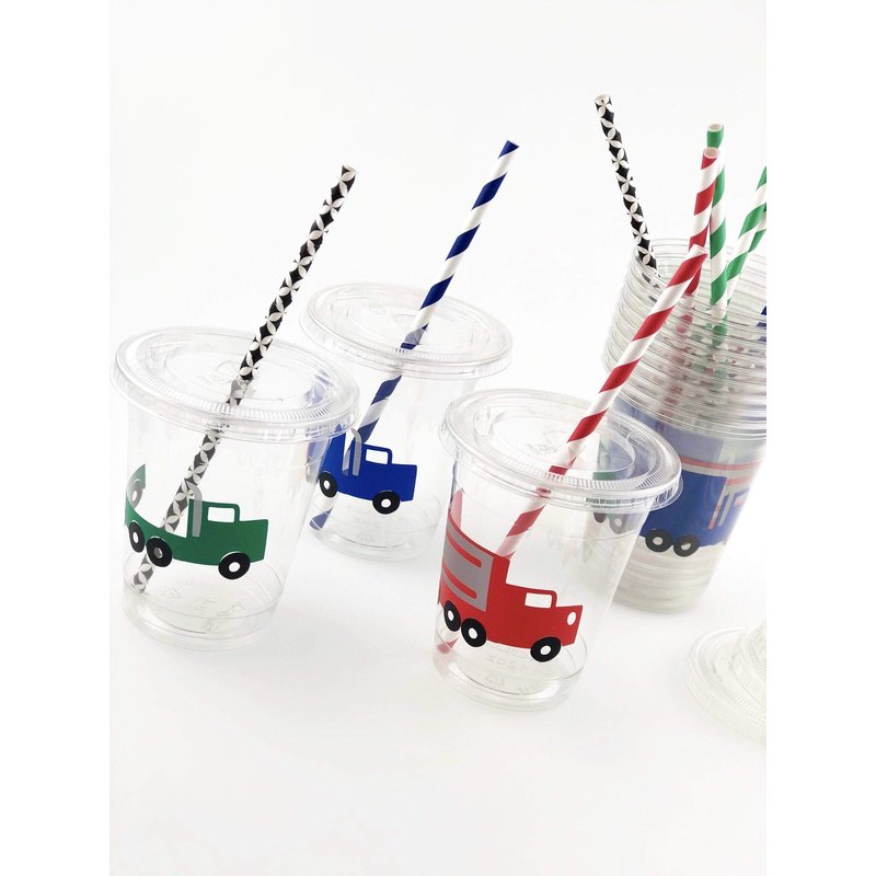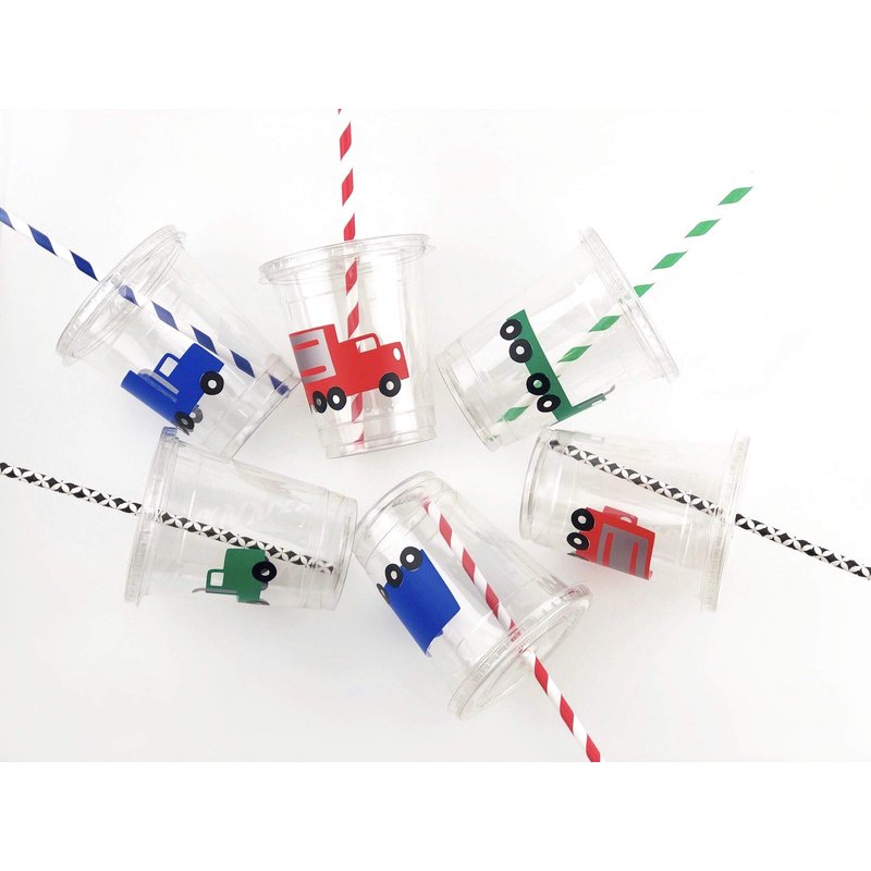 Elevate your transportation-themed celebration with our set of 12 party cups adorned with semi-truck big rig decals! Crafted from soft disposable plastic, these cups are not only durable but also convenient for easy cleanup. Perfect for a boy's birthday party or baby shower, these cups add a touch of excitement to any event. Whether you're serving up drinks or filling them with party favors, their versatile design makes them a hit with guests. With each cup holding 12 ounces, there's plenty of space for serving a variety of beverages to keep the party rolling. Get ready to hit the road to fun and adventure with our transportation-themed party cups!