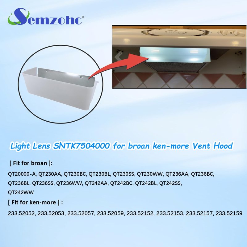 - 👨🔧[ Replacement part numbers ] Light lens fit for broan range hood light lens replacement SNTK7504000 Replaces part Numbers: SNTK7504000, K7613000, K7504000, K7613-000, NTK7504000, B00QW2DI8G, 949658, AP3378324