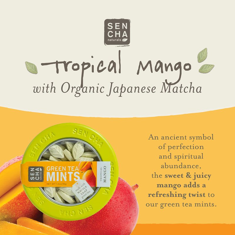 SEN CHA Naturals Green Tea Mints, Tropical Mango, 1.2 oz (Pack of 1)