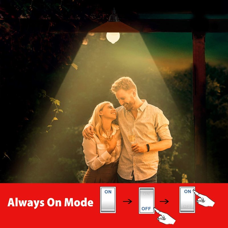 - Always On Mode: This motion sensor light bulb supports an “Always On” mode — by quickly switching the bulb off and on, once, you can temporarily deactivate the sensor and use the bulb as a standard LED light.