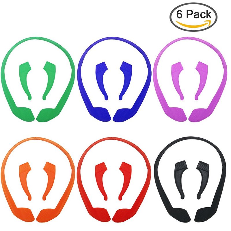 SENHAI 6 Pack Anti-Slip Silicone Glasses Straps with 6 Pairs Ear Grip Hooks, Soft Eyewear Retainer Eyeglasses Holder for Kids Adult Sports - Black, Red, Orange, Pink, Blue, Green