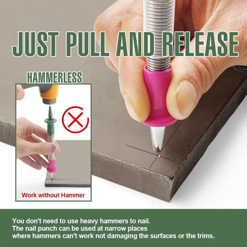 - Anti-Slip Handle Design: The hammerless nail punch can better hold the tool for operation. The spring nail set can control precision more accurately and will not damage original prints and materials, and no hammer is required.