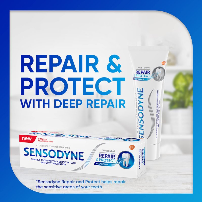 - Two 3.4-ounce tubes of Sensodyne Repair and Protect Teeth Whitening Toothpaste
