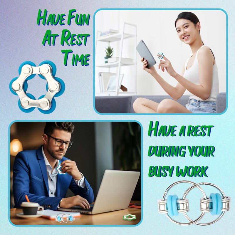 - 🎁10 Set Fidget Packs: 2 Roller Chains, 2 Marble Mesh Fidget Toys, 2 Spiky Sensory Fidget Rings, 2 Six Roller Bike Chain Fidget, 2 Pea Pod. 5 kinds of various fidget toys help you relieve stress.