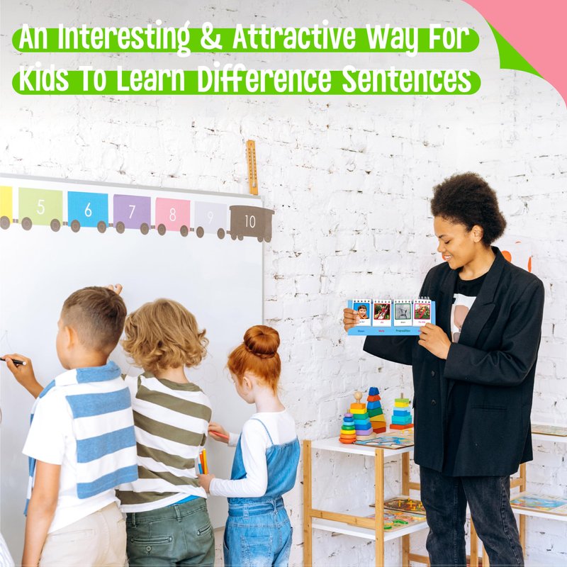 - Educational Learning Tool: The flip chart gives 2 kinds of sentence patterns for sentence making, suitable for kids who struggle with penmanship. The flashcards includes noun, verb preposition, etc. which will help children make complete sentences and learn part of speech. Kids can build endurance for sentence writing, work on spacing between words, remember to capitalize and end a sentence with punctuation.