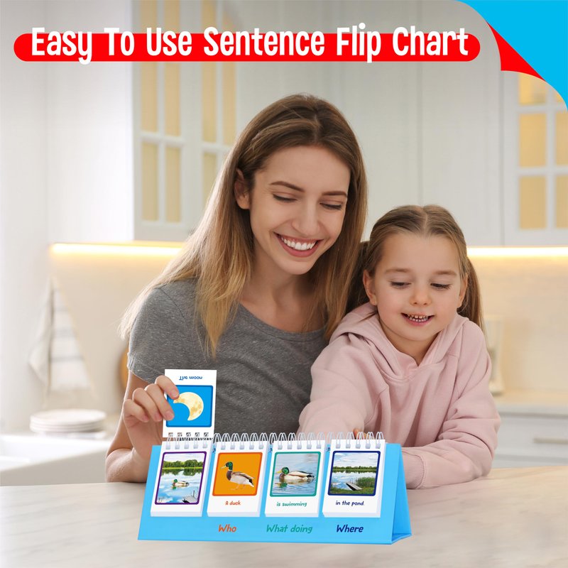 Sentence Flip Charts, 80 Double Sided Cards 40 Sentences, Learn Parts of Speech Who/What/Where Sentence Building Freestanding Flip Chart Educational Tool for Preschool Kindergarten 1st 2nd Grade