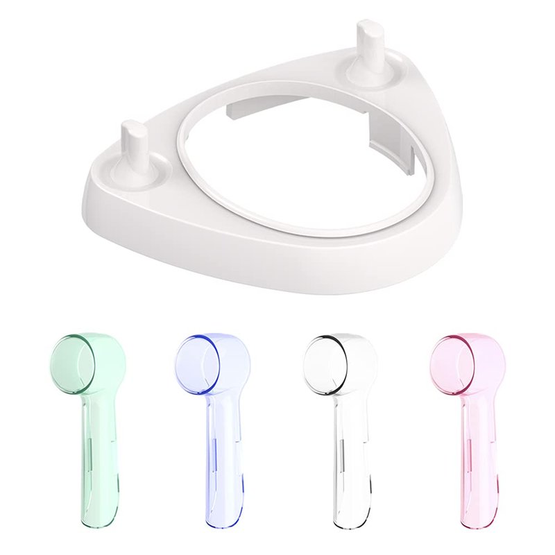 Product specifications: Color: white, blue, green, pink and transparent. Material: food-safe plastic materials. Weight: 24g. Electric toothbrush holder size: 7.5 X 8.2 X 2.5CM. toothbrush heads dust-proof cover size: 6.3 X 1.8 X 2CM. Package Include: 1X electric toothbrush holder, 4 X toothbrush heads dust-proof covers. Note: Only the Electric toothbrush holder and 4 PCS toothbrush head covers in the package. The electric toothbrush and toothbrush heads are not included.