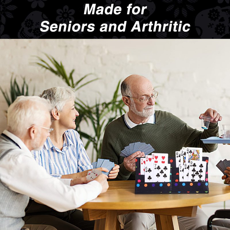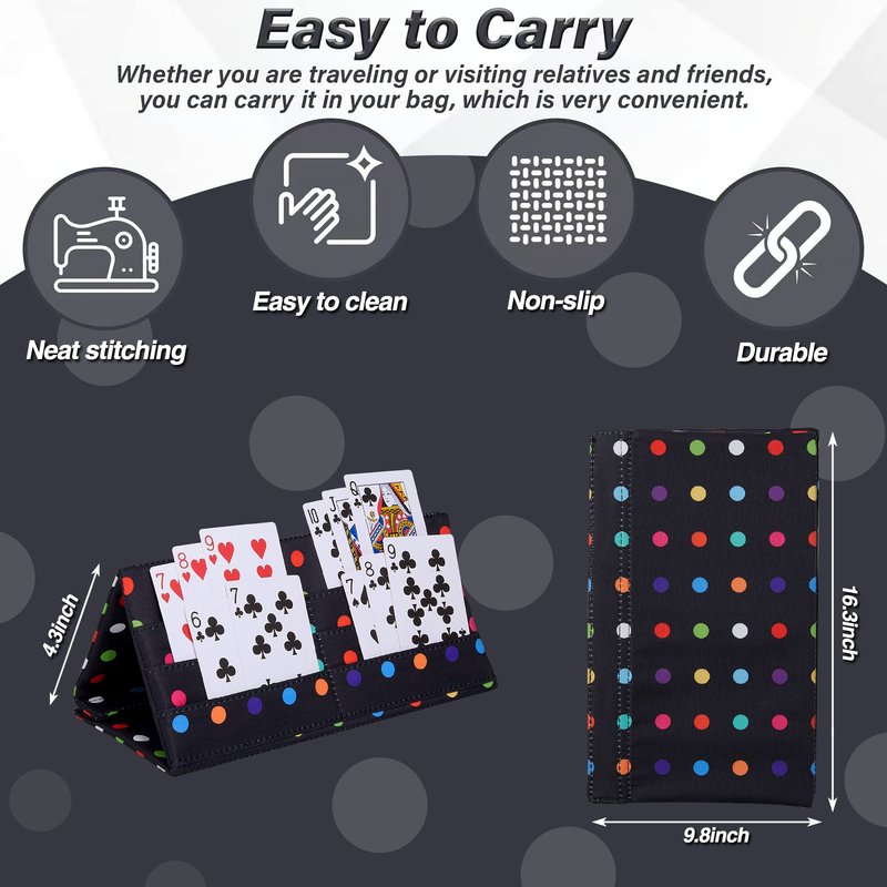 - High Quality: This product is made of thickened canvas fabric with a thicker inner layer of cardboard, durable, non-slip, and easy to clean. More individual and unique than plastic and wooden card holders. The overall stitching is neat, and there are Velcro on the edge, which is convenient for the bracket of the card tray. This product has 6 card slots, and the large-capacity design can hold about 40 playing cards.