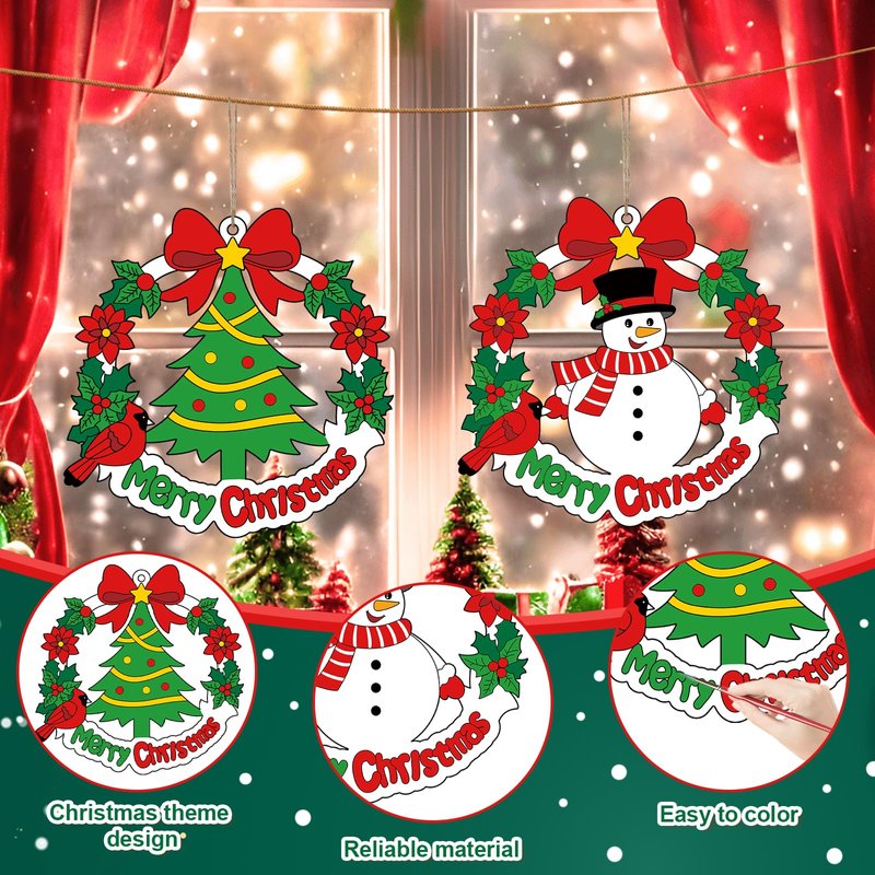 - Exquisite Design: Our Christmas coloring wreath set has two different styles, Christmas tree and snowman, with exquisite design, which is very suitable for the atmosphere of Christmas.