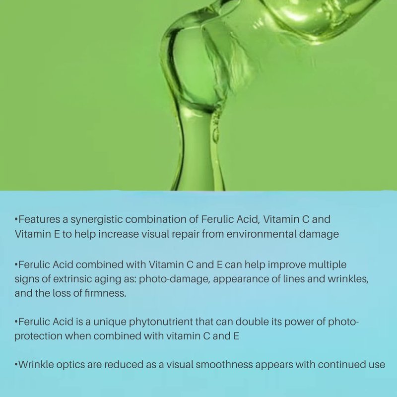 - FERULIC ACID - a unique phytonutrient that significantly improves multiple signs of visible, extrinsic aging. Photo-damage, fine lines, deep wrinkles, and the loss of firmness are all targeted and softened