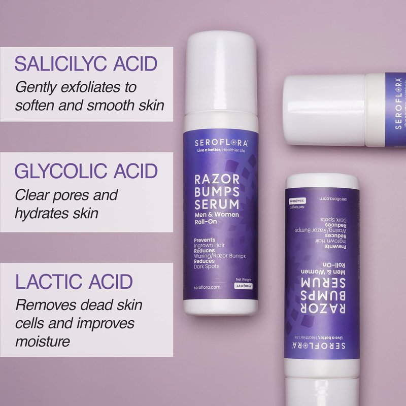 Seroflora Razor Bumps Serum-Ingrown Hair Treatment for Women-Razor Bump for Bikini Area - After Shave & Waxing - Roll-On-Face, Legs, Body (3.5floz)