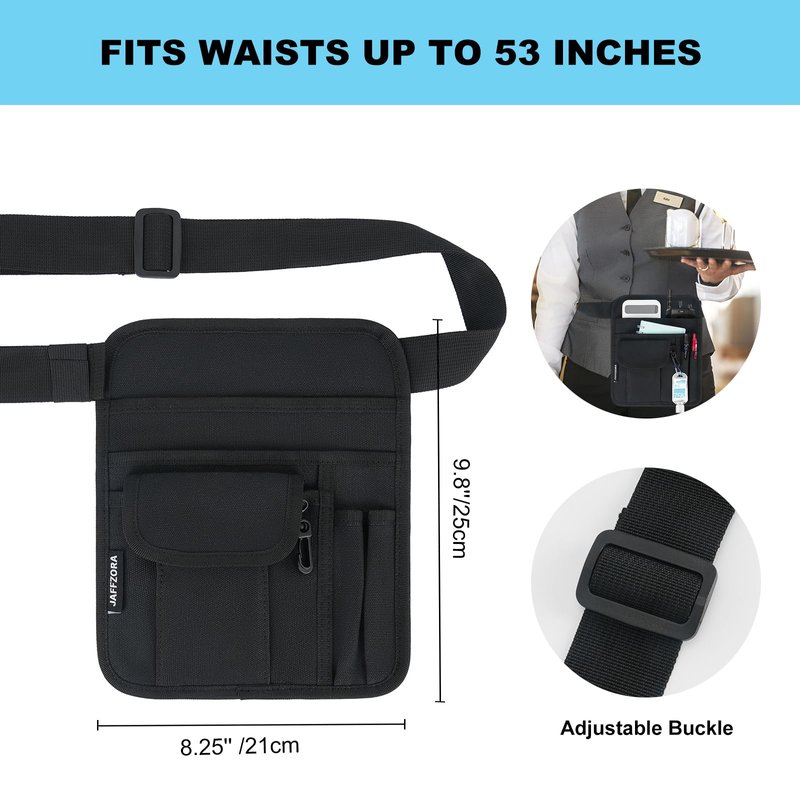 Server Waist Pouch, Restaurant Waitress Accessories Bag with Adjustable Belt, Utility Money Bag Working Serving Apron for Waiter Waitress, Black