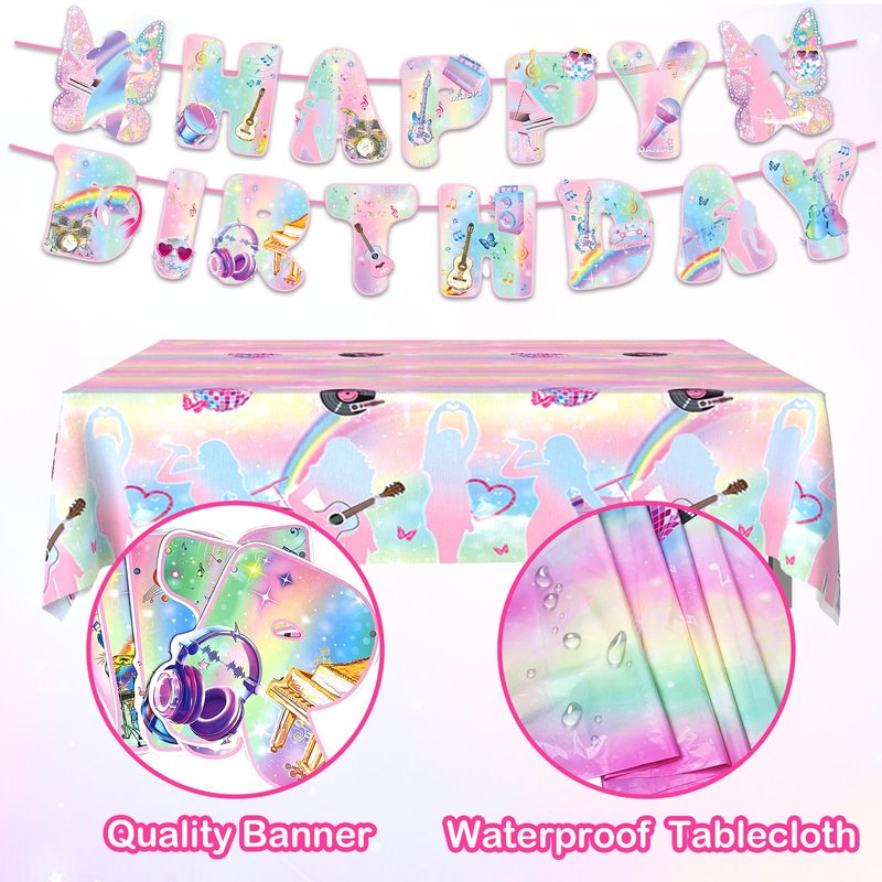 - Our music theme birthday decorations set includes everything you need to create a stunning party atmosphere. With 20x 7" plates, 20x 9" plates, 20x napkins, 2x tablecloths, 18x balloons, and 20x forks, you can effortlessly set up the perfect birthday celebration.
