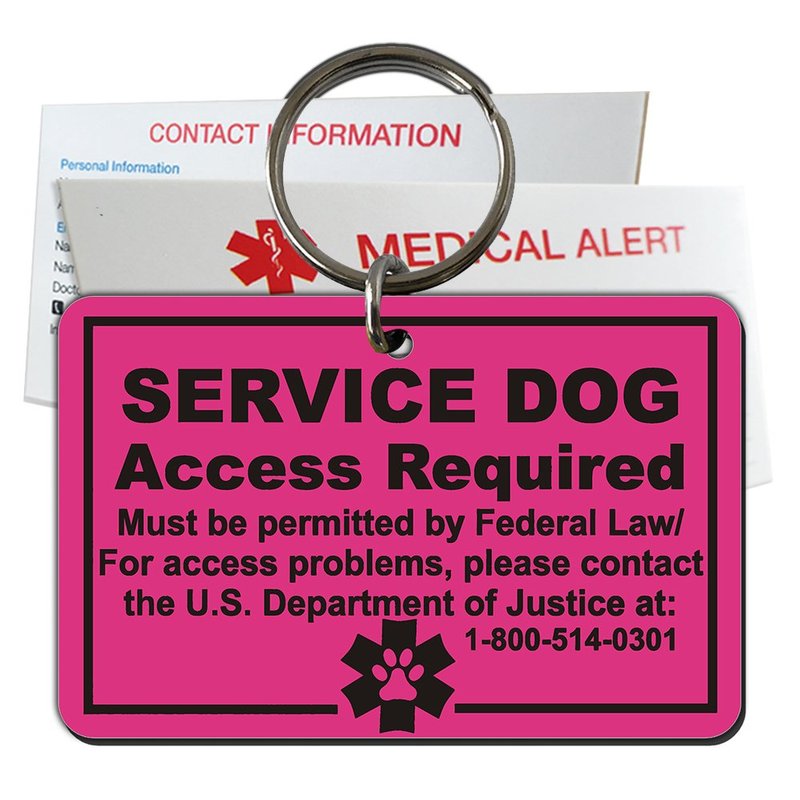 This Pre-Engraved Plastic Service Response Dog tag is easy to attach to your service dog’s vest or collar. The words “Service Dog Access Required” are engraved in extra large bold letters at the top of the tag to clearly identify his/her duties. Being this item comes with additional access information engraved, it can be used to make certain your Service Dog will not be denied access to accompany you.