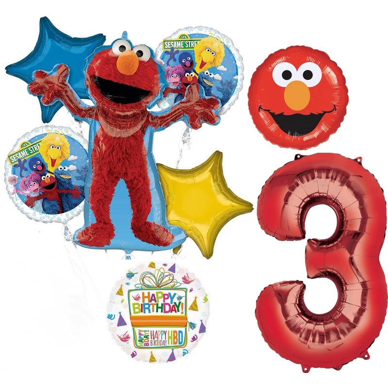- (1) 32" Elmo Full Body Foil Balloon, (1) 34" Giant Red Number 3 Foil Balloon, (2) 17" Sesame Street Foil Balloons, (1) 17" Elmo Red Foil Balloon, (2) 18" Star Foil Balloons 1- Blue, 1- Yellow and (1) 18" Mayflower Products Happy Birthday Present Foil Balloon. Inflate balloons same day of event. Ribbon Not Included. All Anagram Licensed Foil Balloons are Made in USA. Founded in 1977, Anagram International leads the world in innovating and manufacturing foil balloons.
