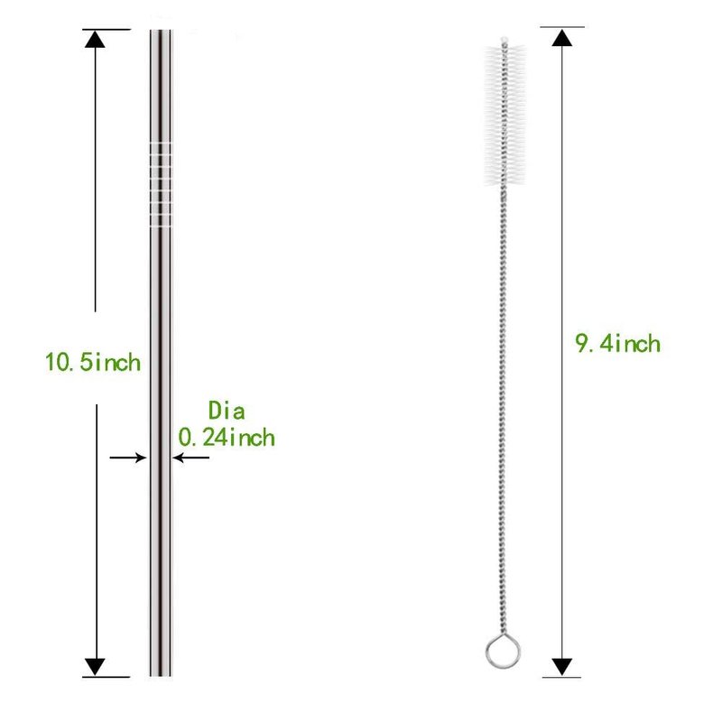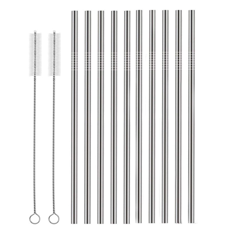 - Set of 10pcs straight stainless steel drinking straws with 2 cleaning brush.