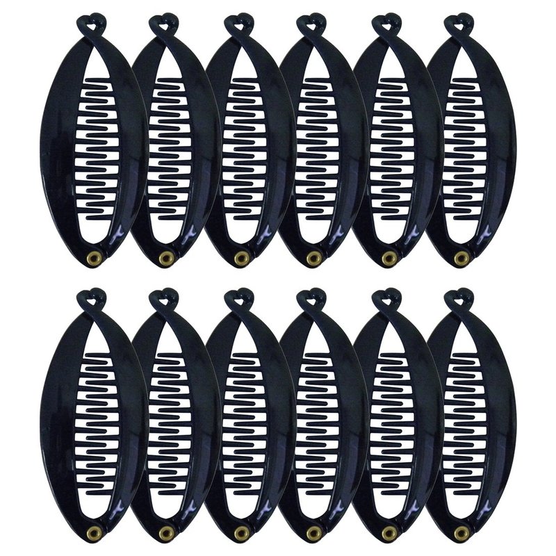 12 mini banana clips in one! Each clip measure 3.5 inches long. This hair clip holds hair well, and is good for children, teens and adults, for all types of hair!