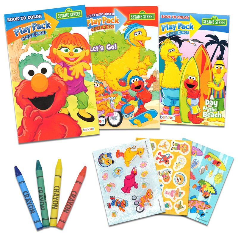 Set of 15 Playpacks. Each Playpack contains 1 childrens mini coloring book, 4 crayons, and 25 stickers. Children’s TV & movie characters for boys & girls. Sesame Street art coloring book set features favorite characters like Elmo, Cookie Monster, Big Bird, and more. Toddler coloring books Grab and Go fun for car travel & vacations. Fun for holidays, Easter basket, birthdays, and prizes. Cool party favors, supplies, art gifts, and presents. Good grade school toddler coloring book for classroom rewards and giveaways making it the best coloring book set. Kids coloring books activities for daycare, camp, parties, pre-school, kindergarten, birthday parties, coloring books for kids sleepovers, etc. Fun for boys and boys. Bulk set in resealable bags, ages 3+, especially popular party favors for kids under 5. Officially licensed Sesame Street toys and games products. Comes with bonus red loot bags.