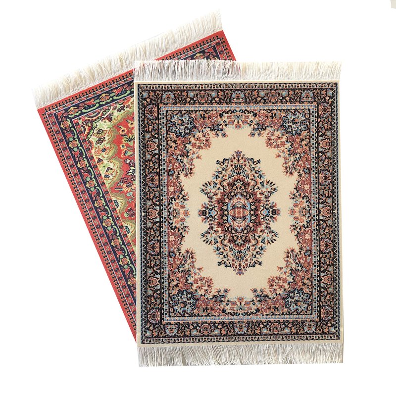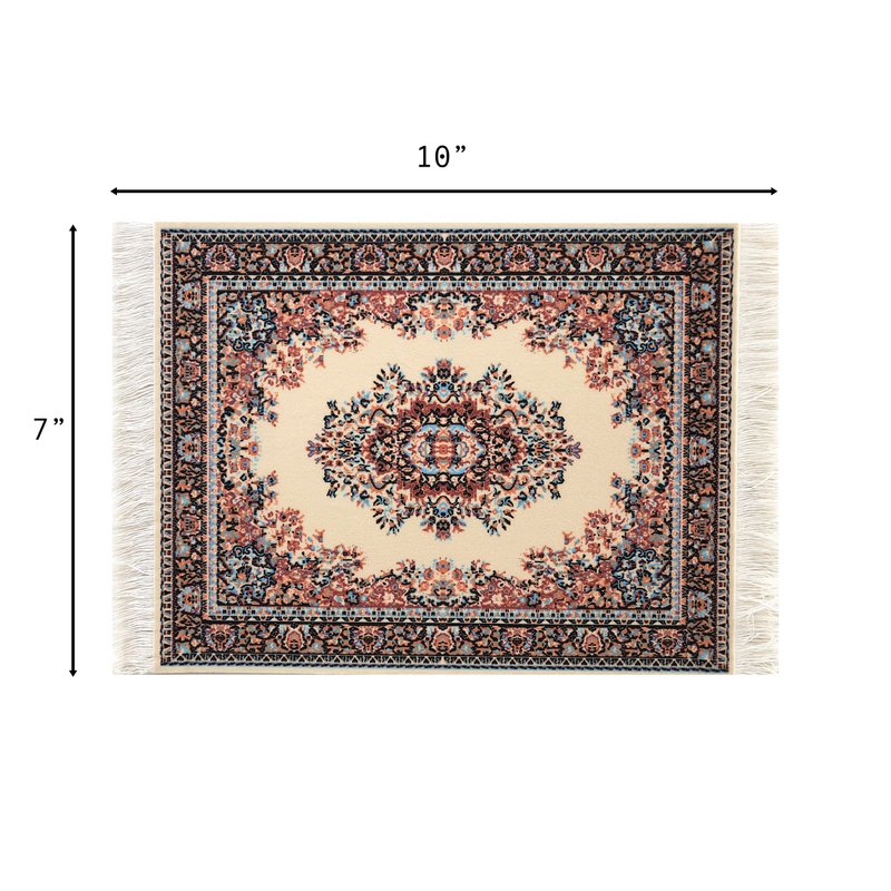 - Made with Care: The top of each rug is a velvet-style fabric with a high quality print of an Oriental and Turkish rug design. This gives the carpet a very soft and authentic look. The white fringes on each end make these minis realistic and fun.