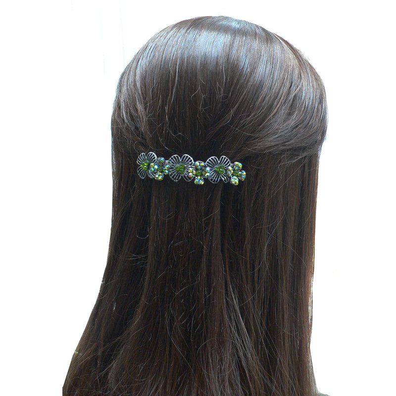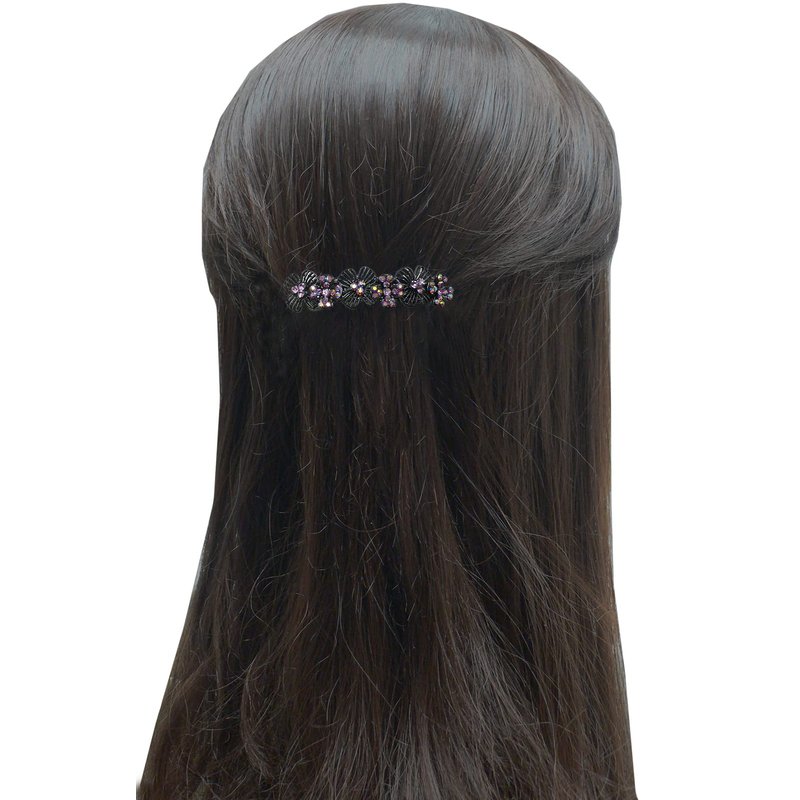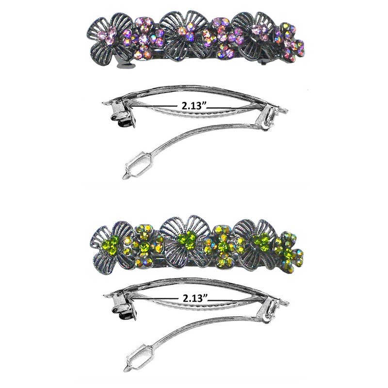 - Set of 2 Crystal metal barrette with artwork design of crystal on lattice petals