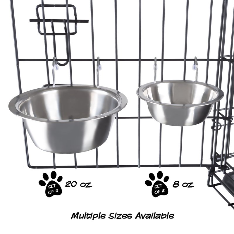 Set of 2 Stainless-Steel Dog Bowls - Cage, Kennel, and Crate Hanging Pet Bowls for Food and Water - 20oz Each and Dishwasher Safe by PETMAKER,Silver