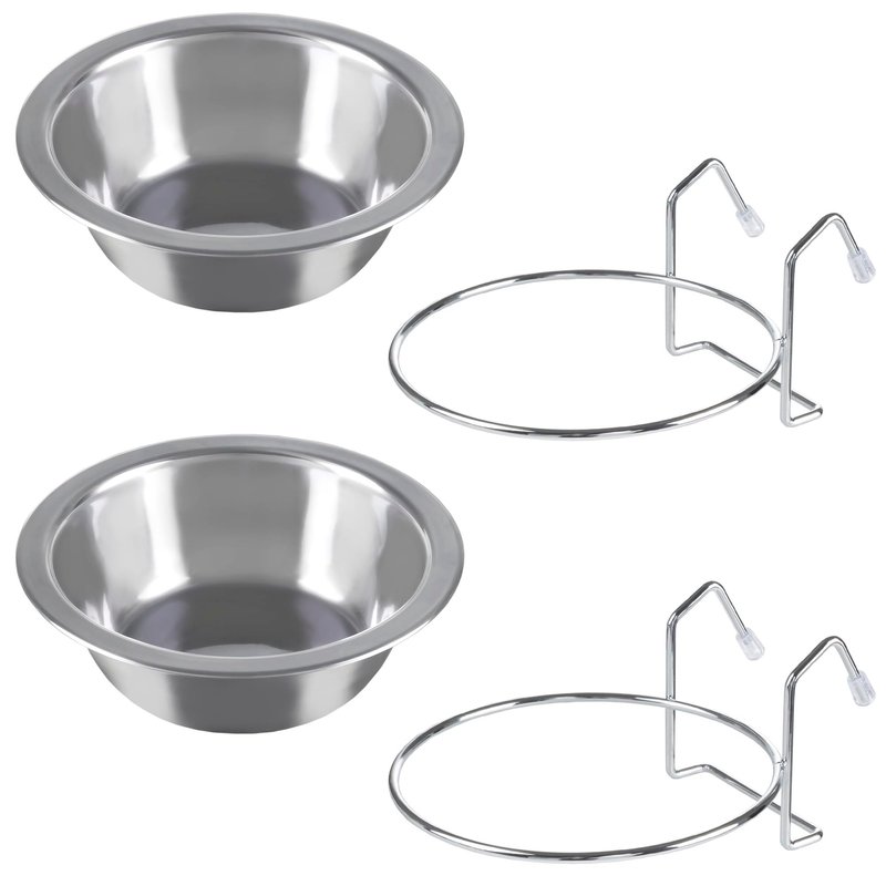 - PET FOOD BOWLS - Featuring a base around the rim of the dish and wire hook brackets, this set of 2 medium dog bowls can attach to pet crates, cages, or even chain link fences. Each hanging crate water bowl holds 20oz of food or water.
