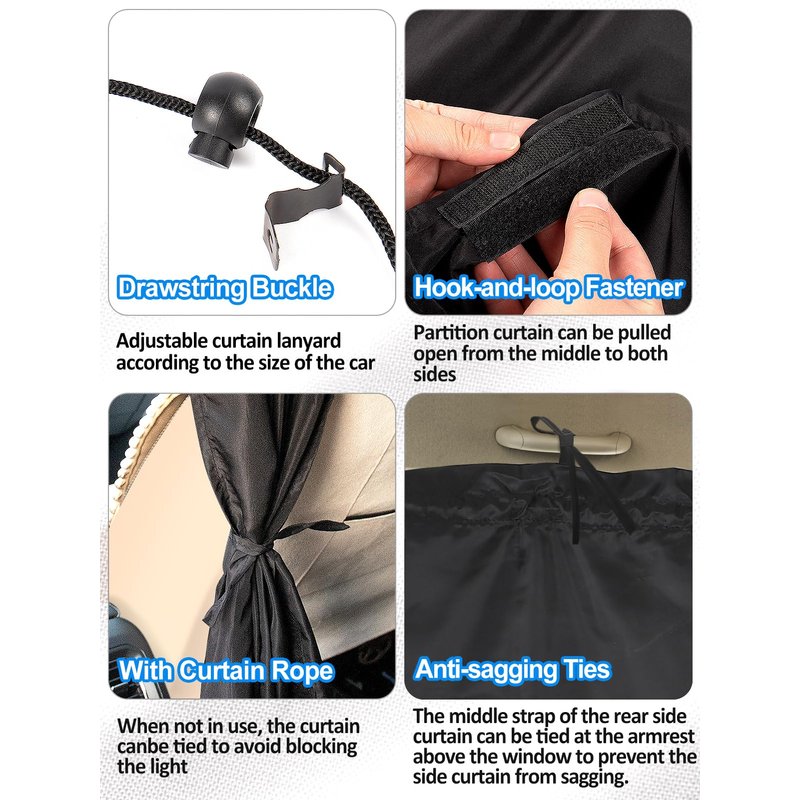 The curtains are adjustable with a drawstring, so you can freely adjust the length of the drawstring according to the size of your car.