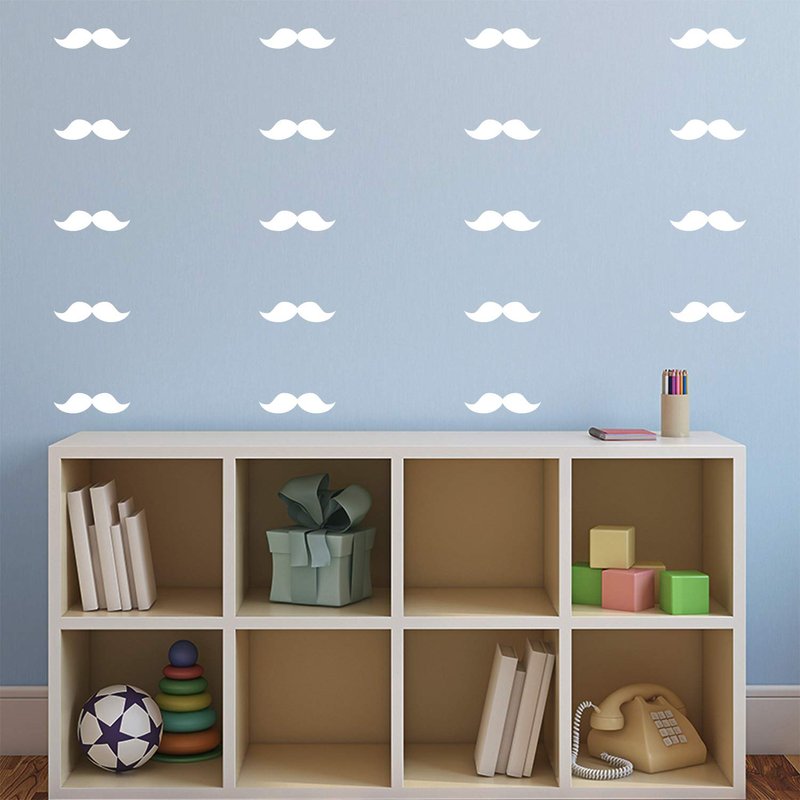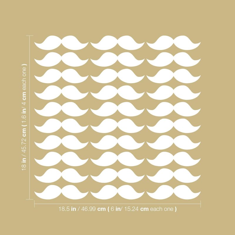 Set of 30 Vinyl Wall Art Decal - Mustache Pattern - 1.6" x 6" Each - Trendy Cute Funny Adhesive Stickers Mustache Design for Home Office Bedroom Living Kids Room Apartment Store Decor (White)