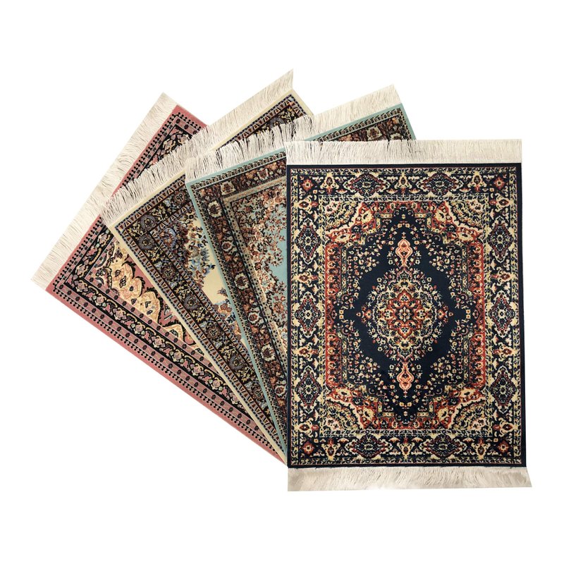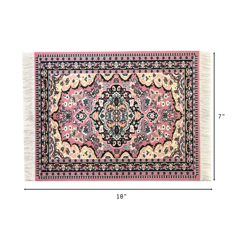 - Made with Care: The top of each rug is a velvet-style fabric with a high quality print of an Oriental and Turkish rug design. This gives the carpet a very soft and authentic look. The white fringes on each end make these minis realistic and fun.