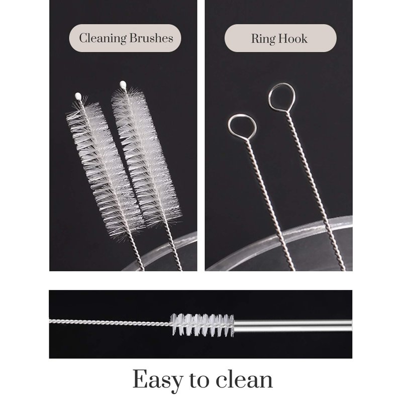 - Long straw cleaning brush X 2: The nylon brush not only helps you easily and conveniently rinse off the stains in the straw, but also can be used at home to clean the water bottle straws. The ring at the end helps you easily store it after cleaning.