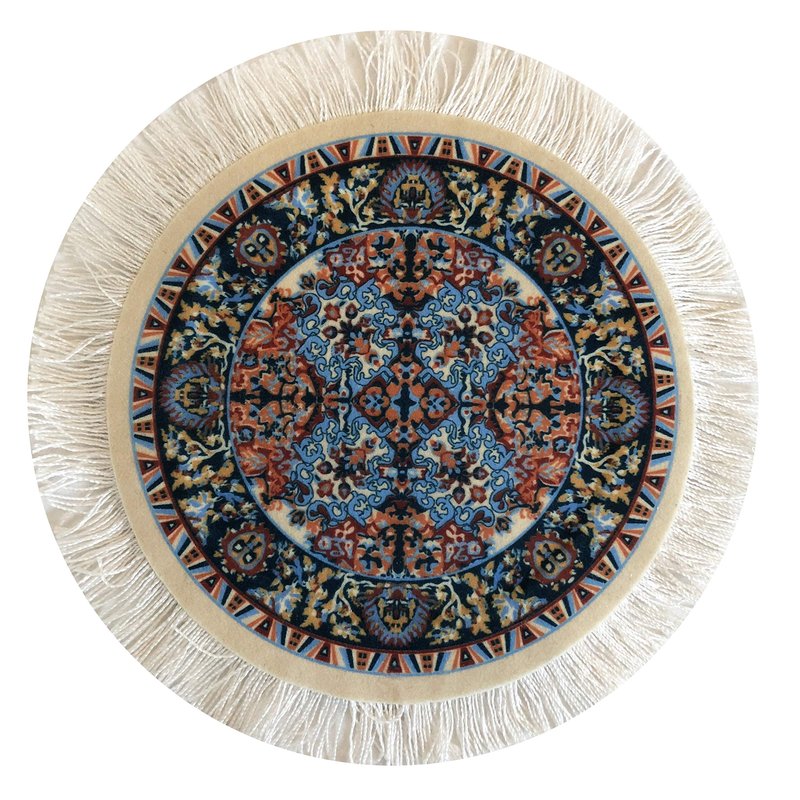 Oriental rugs have been famous for centuries. Now you have the opportunity to add miniature versions of these beautiful designs to your dollhouse. You will receive the four (4) rugs that are pictured. Product Details - Top of each rug has a soft, velvety feel with a unique and authentic Oriental rug design - White fringes long the edge - Bright colors that do not fade - Carpet is washable - Detailed design of authentic Oriental Rugs - Size including fringes: 5" diameter
